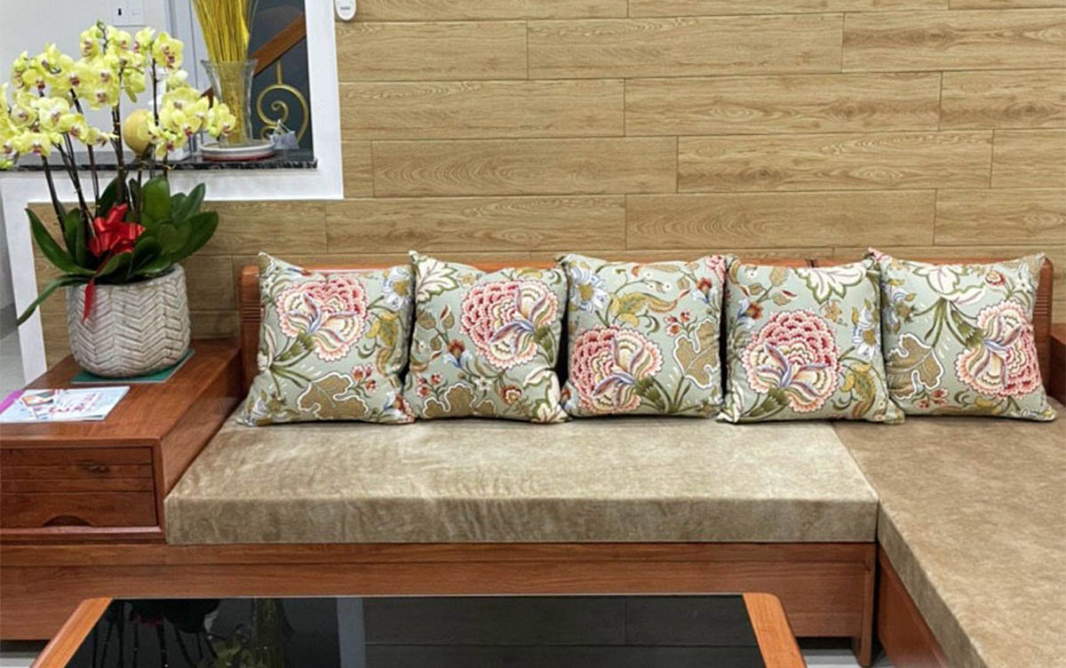 - Vỏ nệm: Với chất liệu vải cao cấp chống bạc màu, nệm mút (mousse) êm ái sẽ khiến phòng khách của bạn trở nên sang trọng. Chất liệu vải đệm thường là vải bố, bên cạnh đó là da công nghiệp (Simili), vải nhung, vải nỉ, vải gấm hoa văn.