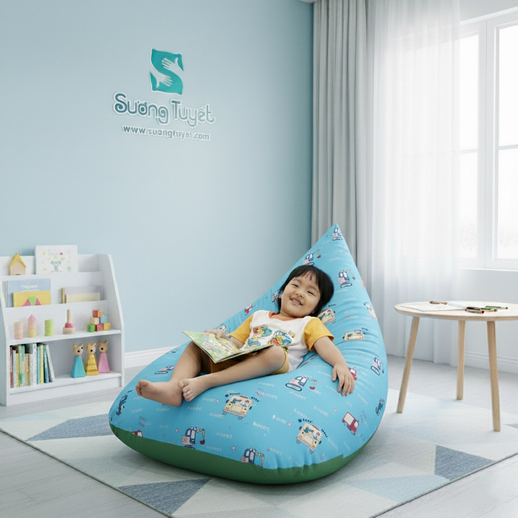 Riêng về chiếc ghế lười này được làm bằng vải cotton, phù hợp dành cho các em nhỏ đọc sách, vui chơi, giải trí.