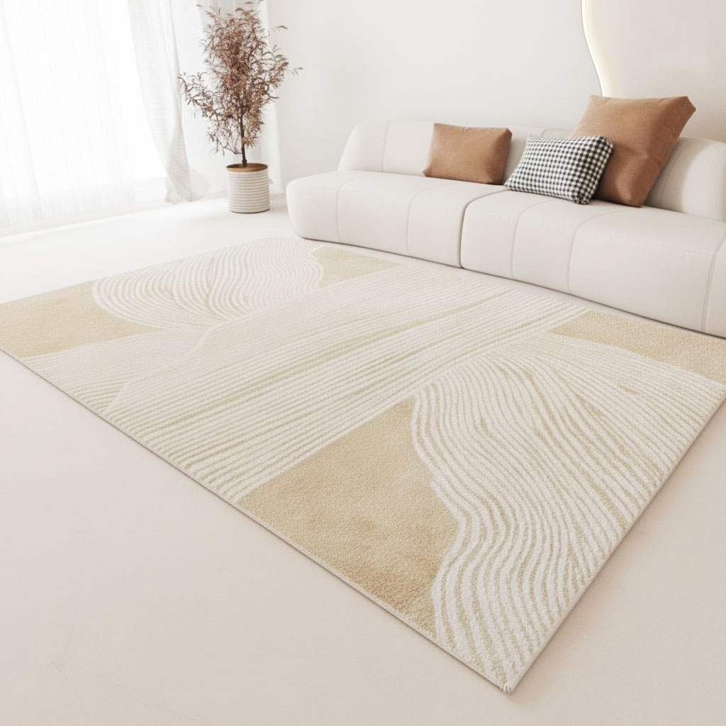 Chất liệu sợi Polyester có độ đàn hồi cao, giúp thảm giữ form tốt, không bị biến dạng dưới sức nặng của bàn trà hay sofa gỗ.