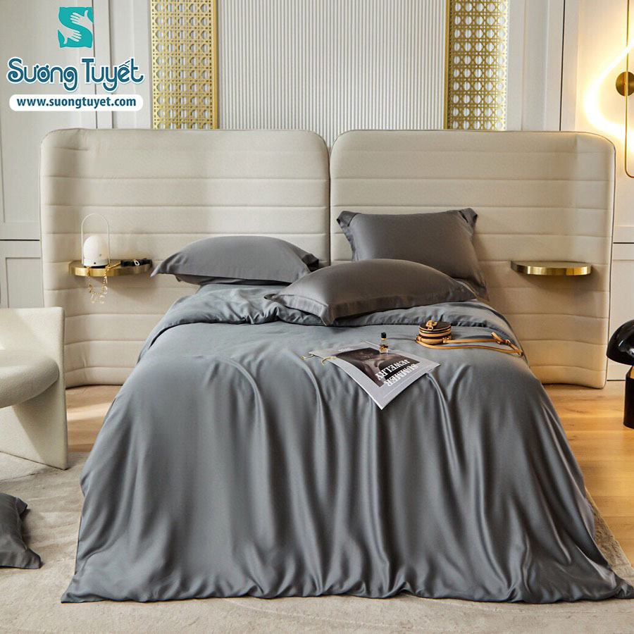 Bộ chăn ga tencel 60s trơn tru, óng và mịn.